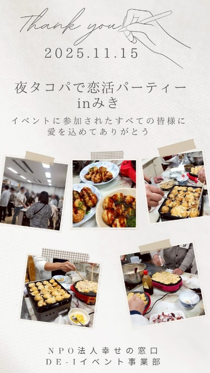 みきで愛サポートセンター協力イベント☆恋するおとなのCookingコン♡夜タコパで恋活パーティーinみき(このイベントは終了しました。)