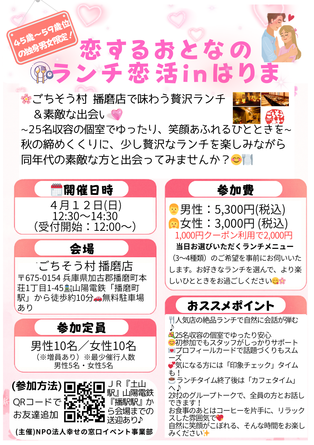 NEW☆彡45歳~59歳の独身限定☆恋するおとなのランチ恋活♡inはりま